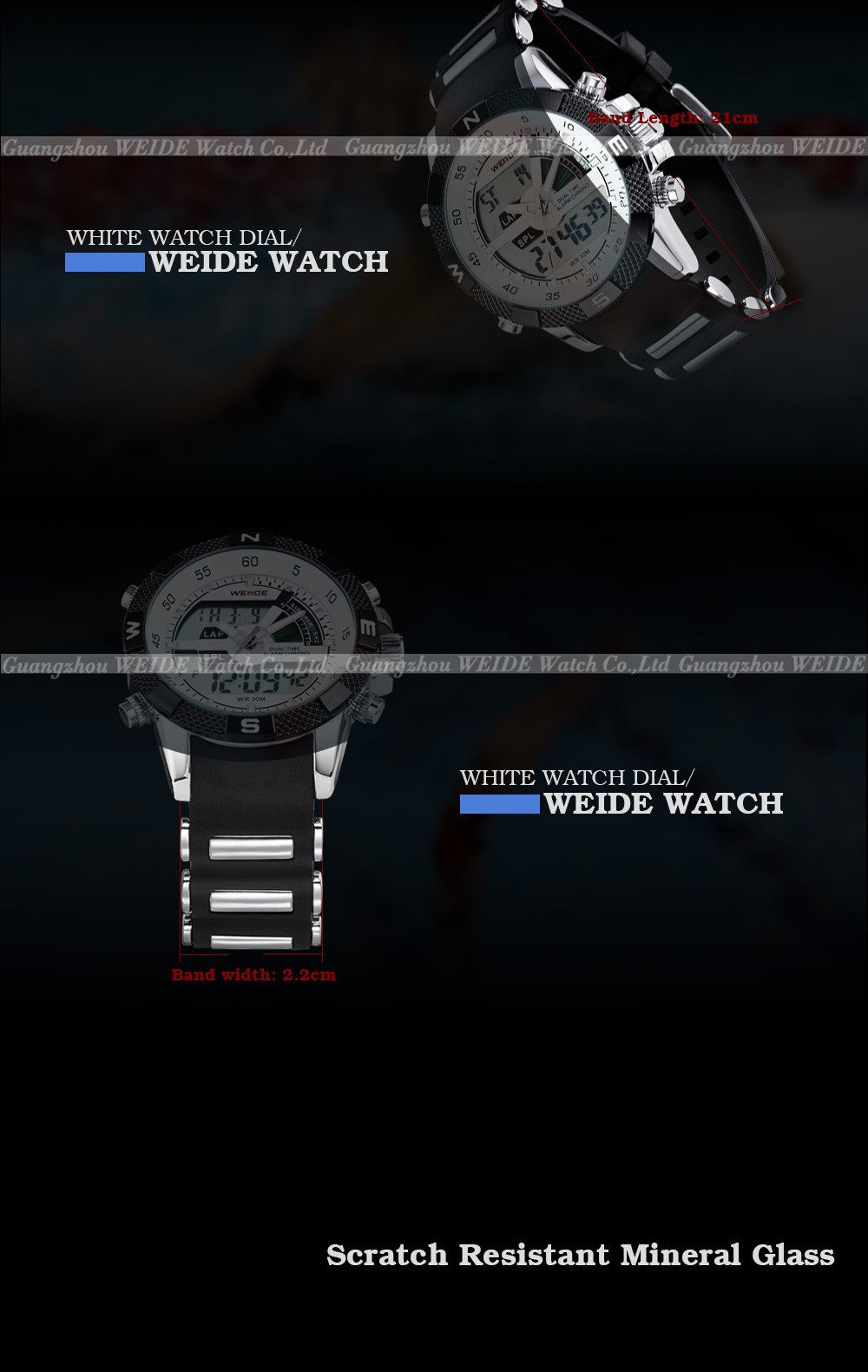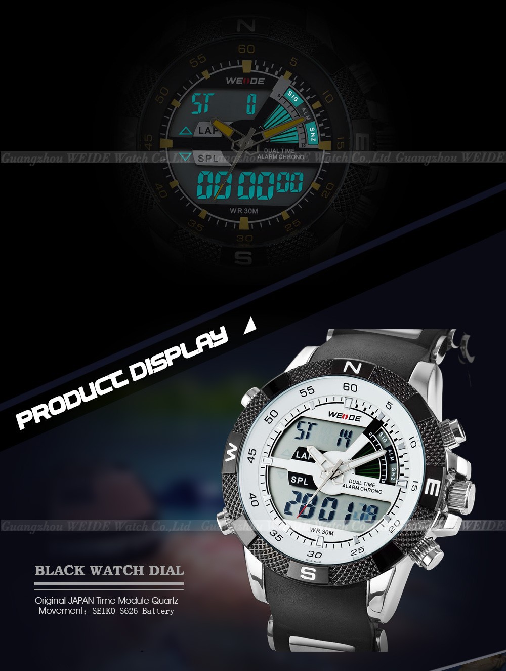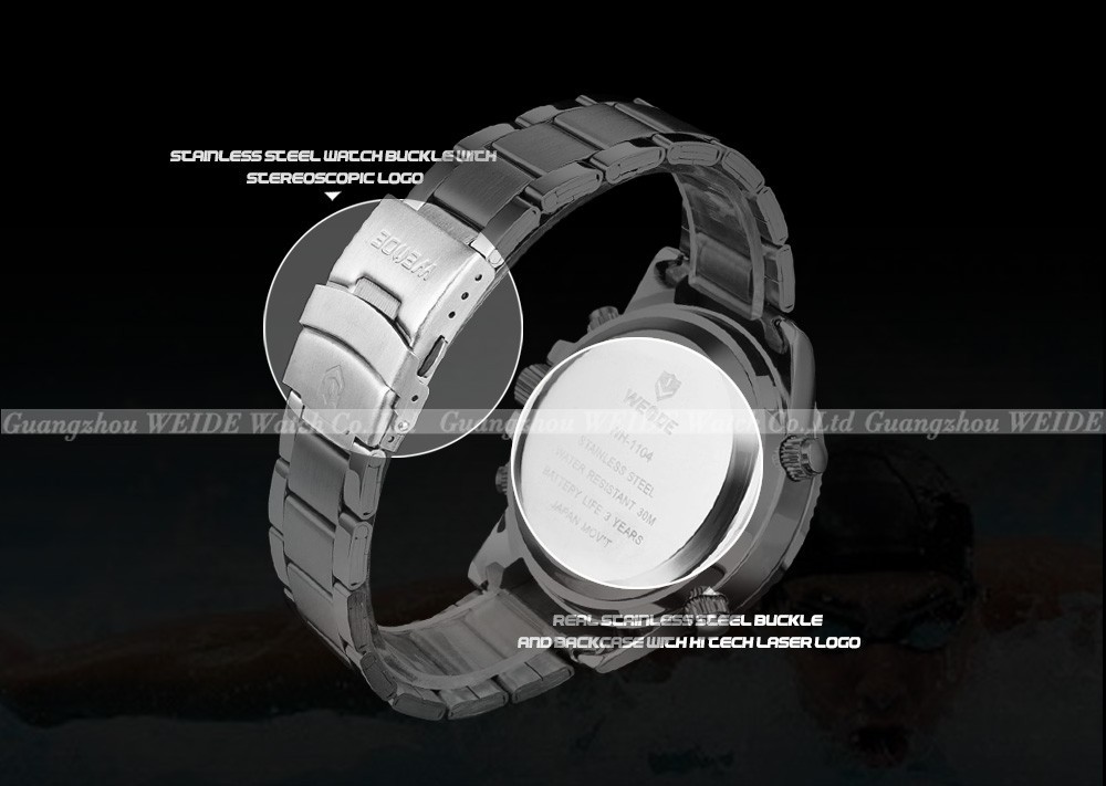 2013 Brand New WEIDE men LED Luminous analog digit dual time display Date Week Alarm luxury brand sport watch unique design 3ATM