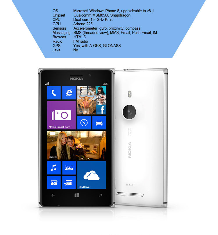 Original Nokia Lumia 925 Windows Mobile Phone 4.5” 8MP WIFI GPS 3G GSM 16GB internal Storage