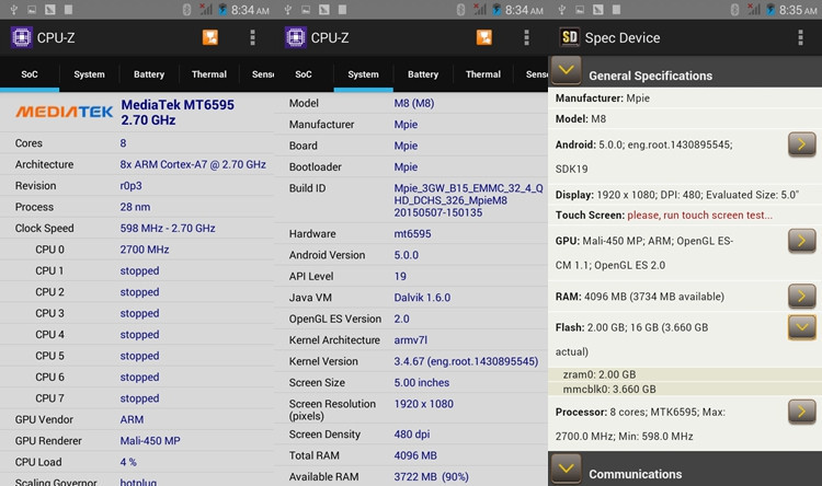 Original phone Mpie M8 MTK6595 Octa Core 2.7GHz 4G RAM 16G ROM 13.0MP 5.0" 1920*1080px Android 5.0 mobile phone