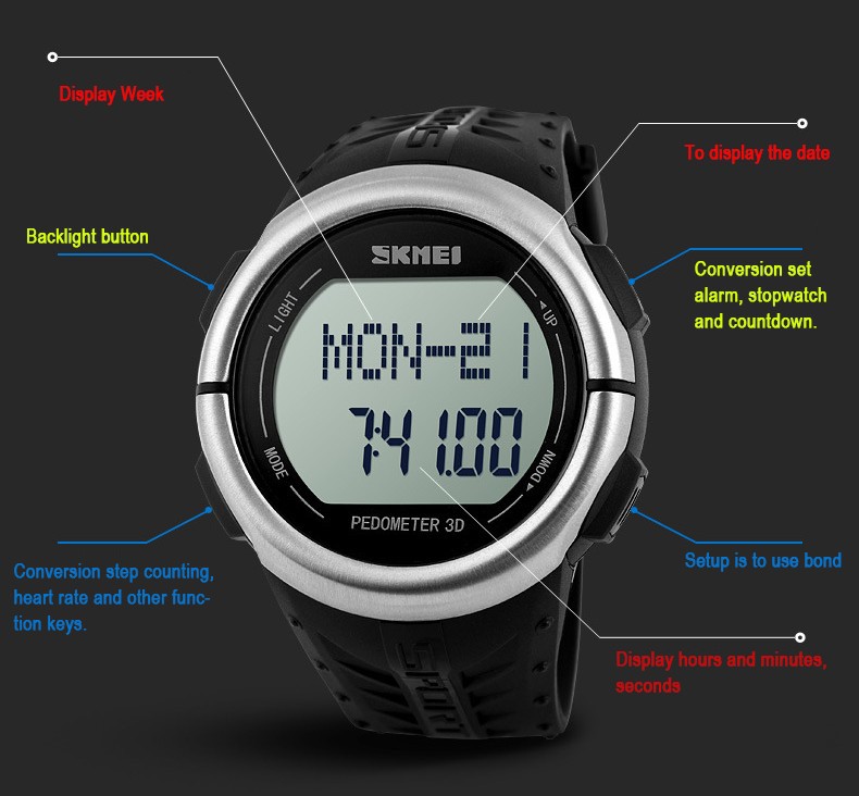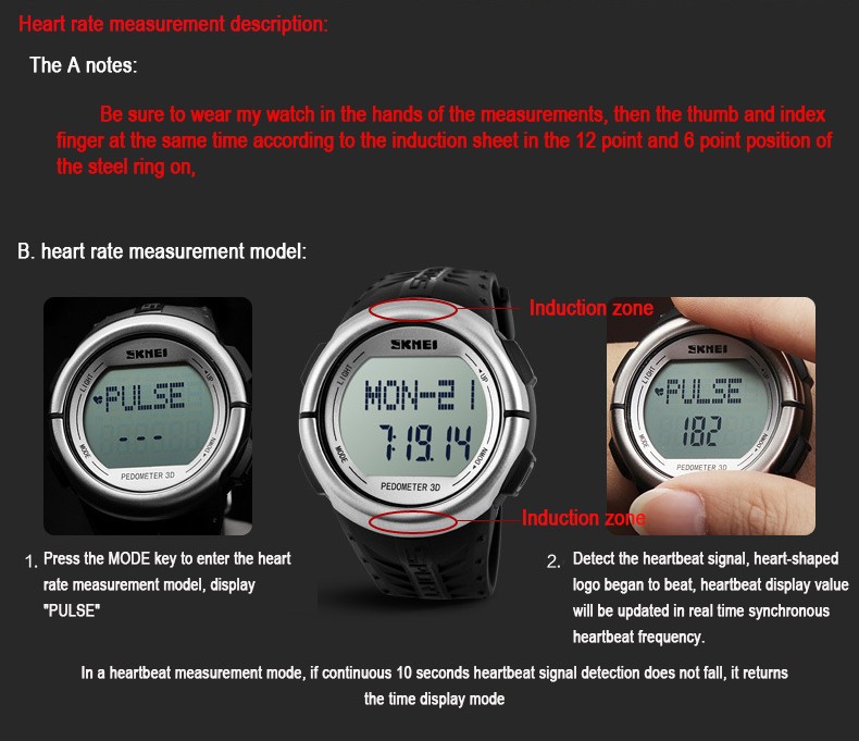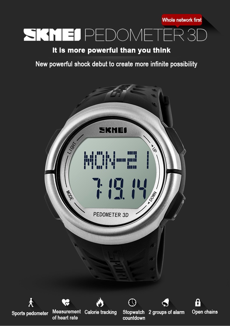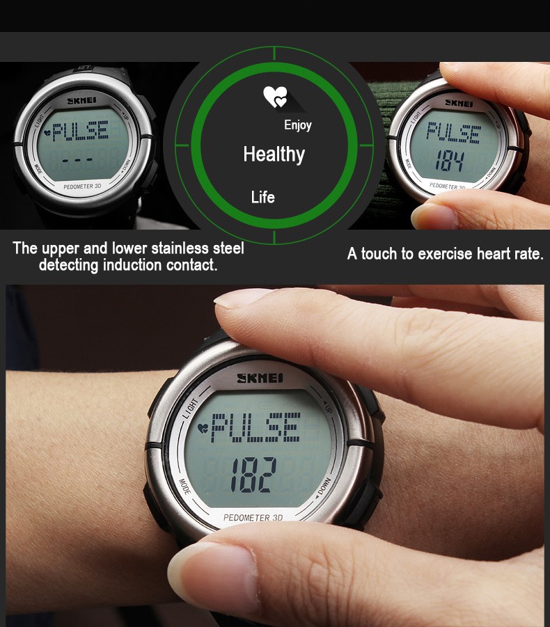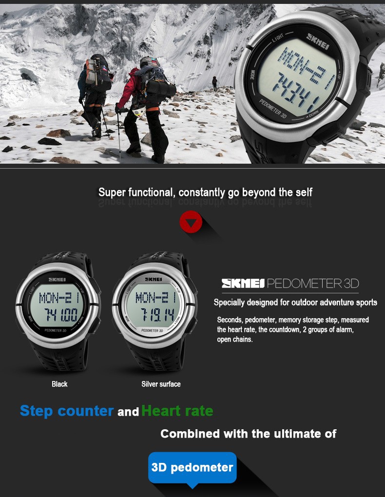 Hot SKMEI 1058 Heart Rate Monitor pedometer Sports watches for men 50m waterproof digital watch men women sports calorie counter w543