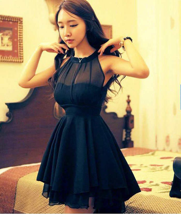 2014 New Arrival Hot Sale Womens Backless Sleeveless Chiffon Party Evening Mini Sexy Dress Freeshipping & Wholesale