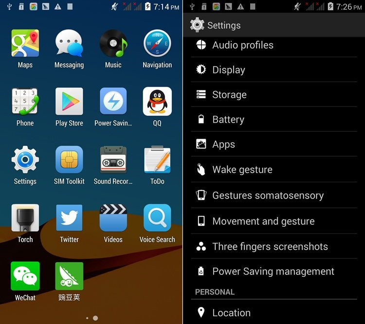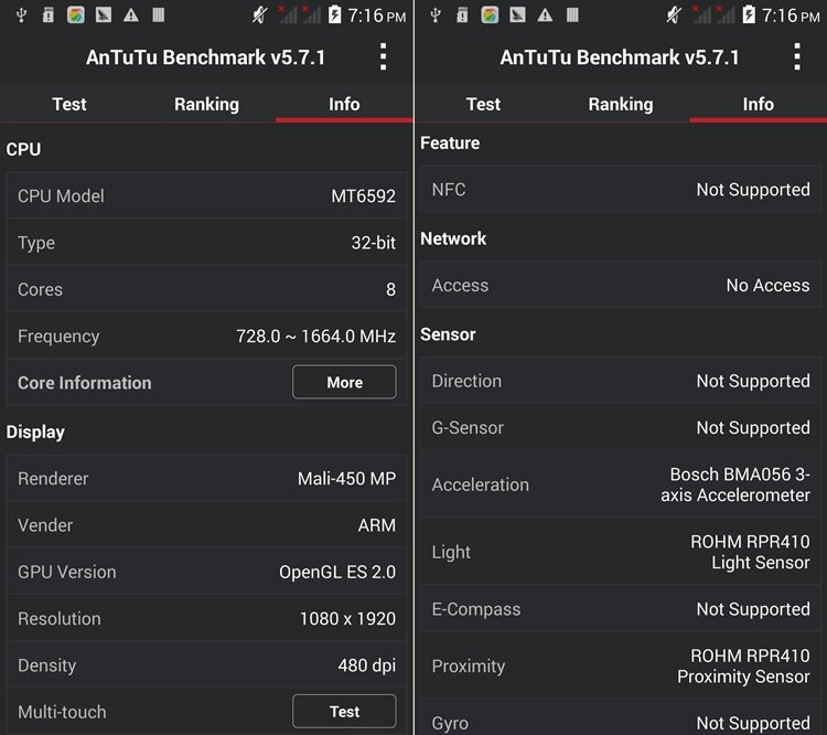 | CPU | MTK6592, Cortex A7 octa core, 1.7GHz; GPU: Mali-450 MP4 |