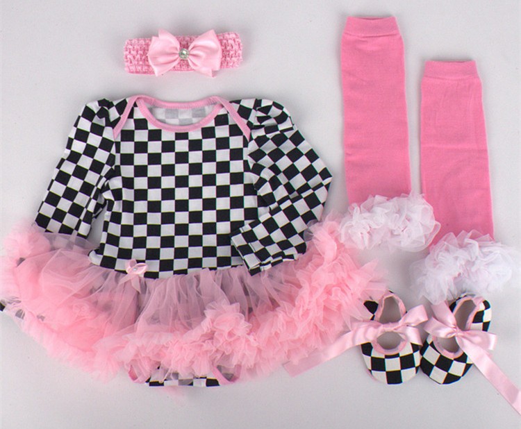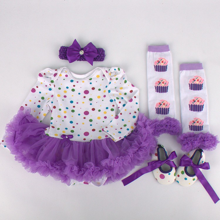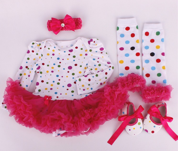 3. 4pieces/lot = (1 piece romper+ 1 pair leg hotter+1 pair footwear +1 piece scarf)