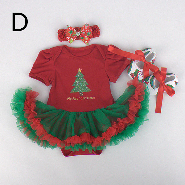 2014New Christmas Baby Infant 3pcs Clothing Sets Girl Xmas Gift Costumes Romper Jumpersuit+Headband+Shoes Free shipping