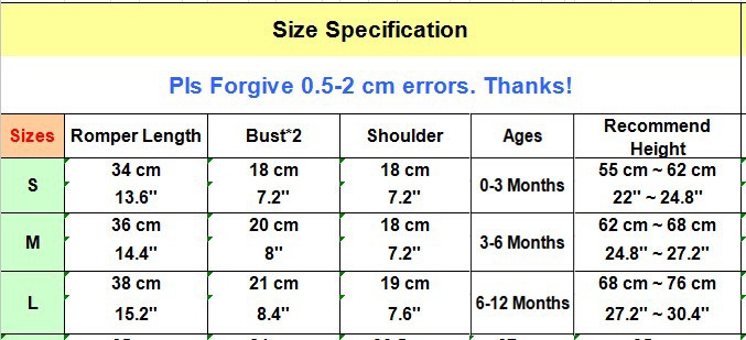 Size: S(0-3M), M(4-6M), L(10-12M) Suit for zero-1 years baby (Only for reference)
