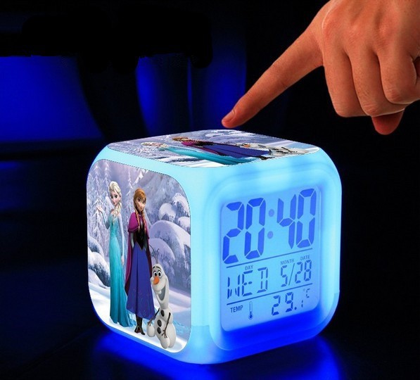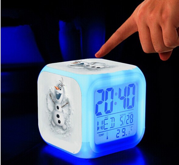 Brinquedos Olaf Elsa doll LED 7 Colourful Comic strip Alarm Clock , minions Digital Toys,Dolls & Stuffed ToysUSD 9.99/piece