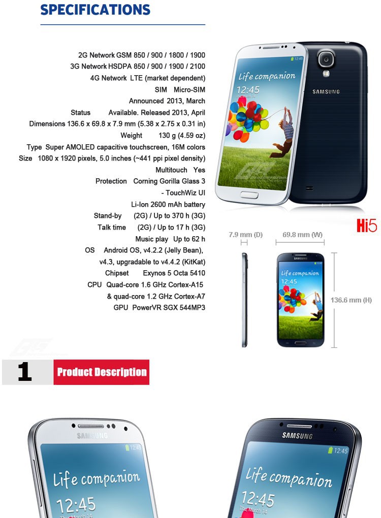 Samsung GALAXY S4 i9500 Original Phone 1.3MP Camera Quad-Core 2GB RAM 16GB ROM0 Refurbished mobile Free Shipping